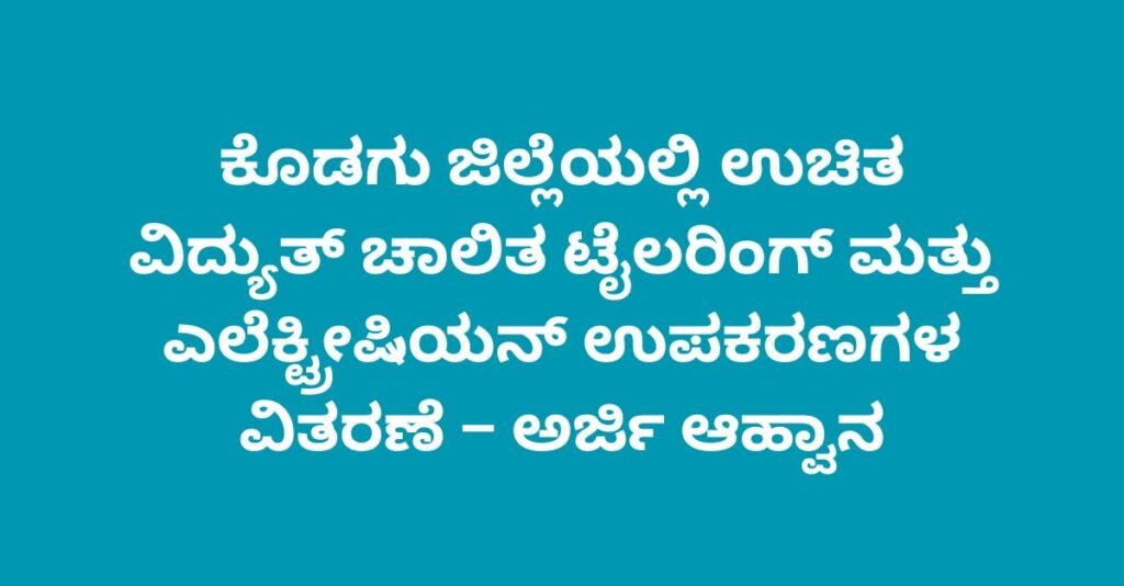 ಕೊಡಗು ಜಿಲ್ಲೆಯಲ್ಲಿ ಉಚಿತ ವಿದ್ಯುತ್ ಚಾಲಿತ ಟೈಲರಿಂಗ್ ಮತ್ತು ಎಲೆಕ್ಟ್ರೀಷಿಯನ್ ಉಪಕರಣಗಳ ವಿತರಣೆ – ಅರ್ಜಿ ಆಹ್ವಾನ